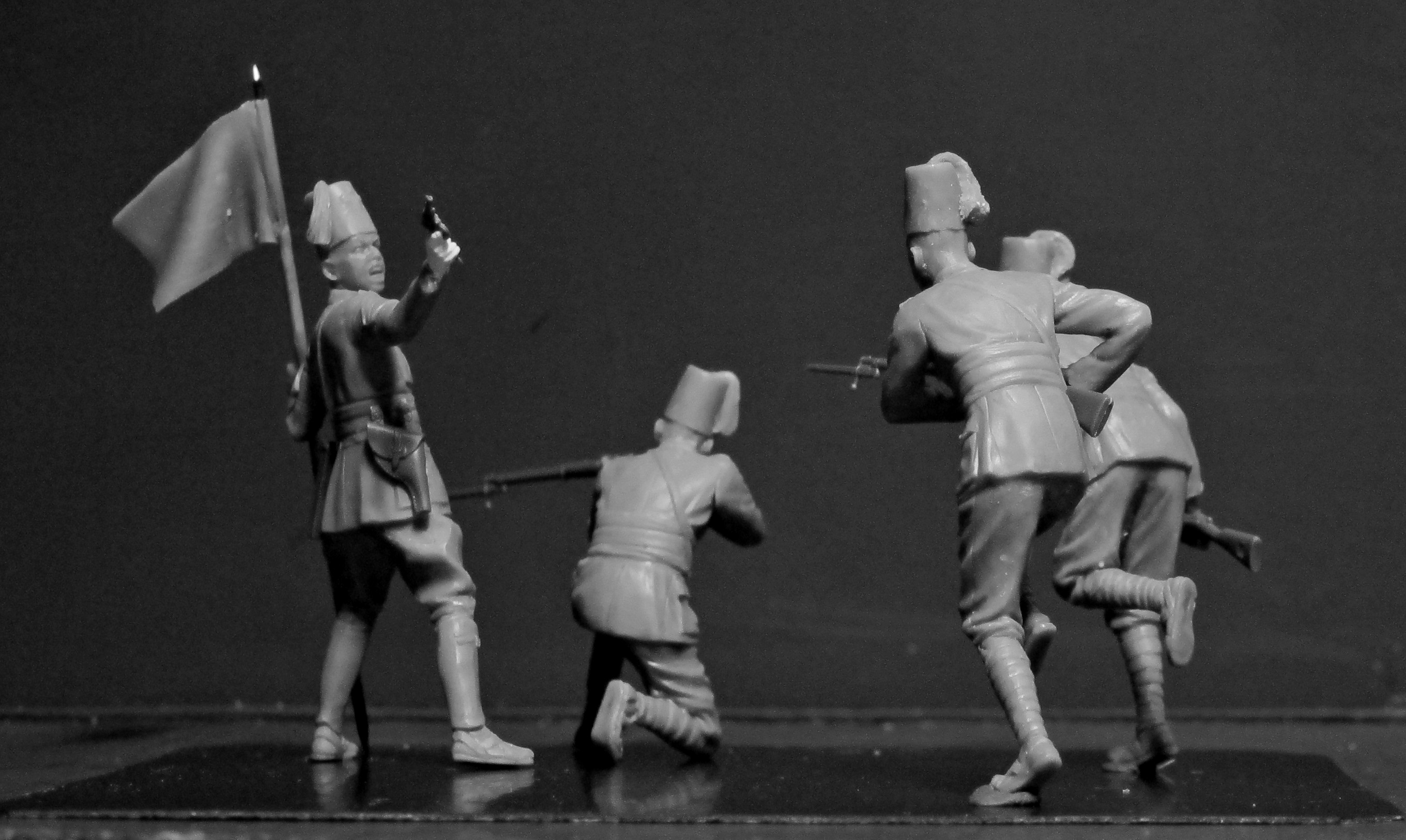 Комплект пластиковых деталей для сборки 4 фигур.