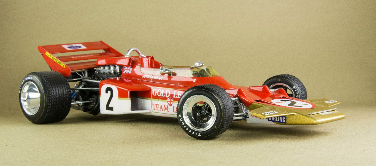 Lotus 72 - 1970г. (Великобритания). Долгожитель Формулы 1. За шесть лет выступлений он выиграл 19 Гран при. Конструкторы Colin Chapman и Maurice Philippe внедрили два важных новшества - клиновую форму кузова и боковые радиаторы охлаждения. В 1970 году, до трагической аварии в Monza, Jochen Rindt выиграл пять гонок Гран при. Он посмертно стал чемпионом мира. (текст взят с сайта http://formula1retro.ru, фотоматериалы взяты с сайта http://www.greenmats.club, автор Barabakin)