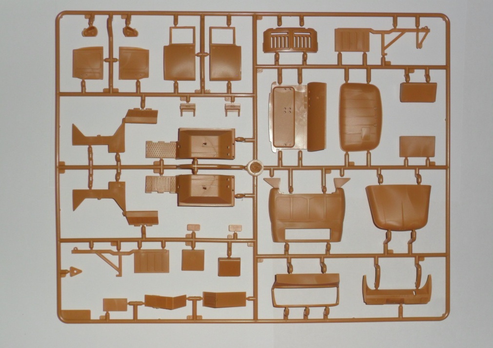 Детально проработанная сборная кабина с сиденьями, приборной панелью, элементами управления, внутренняя обшивка дверей выполнена отдельными деталями.