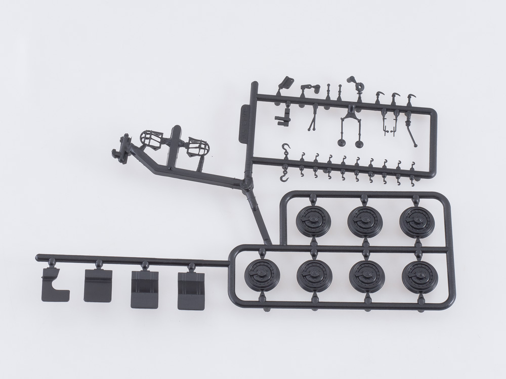 В комплект входит: металлический кузов, пластиковые детали для сборки одной модели, резиновые шины, декали и инструкция.