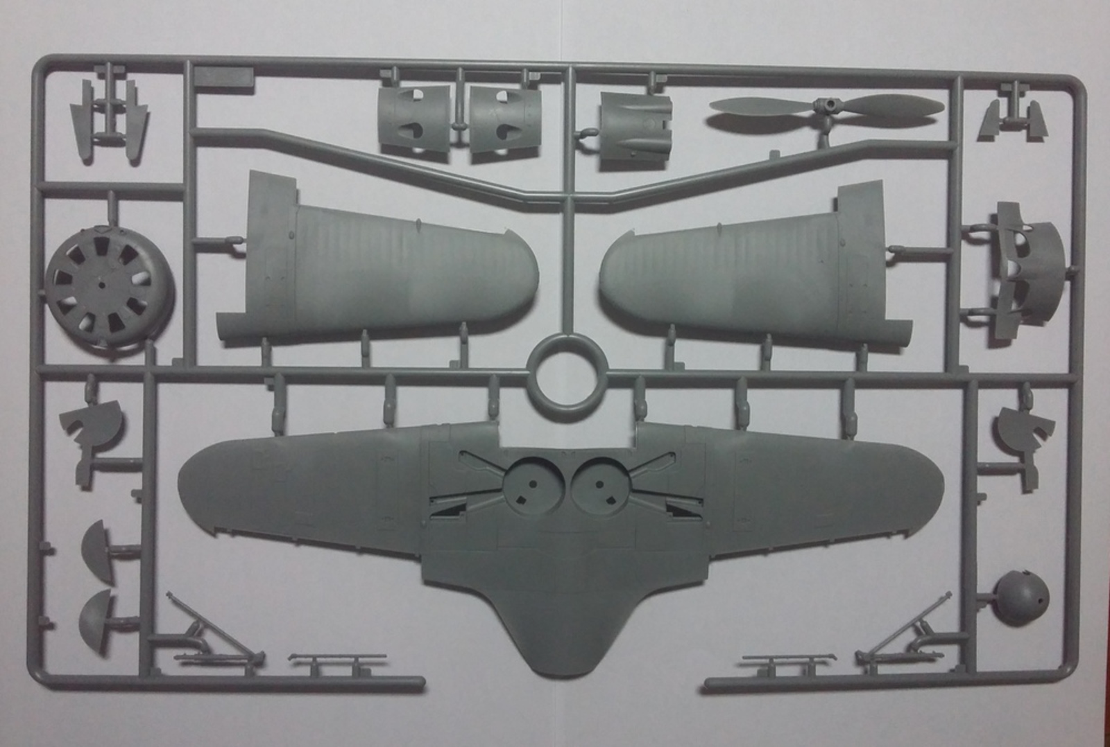 Длина модели 198 мм, размах крыльев 282 мм, 115 деталей, 4 варианта декалей. Подставка в комплект не входит.