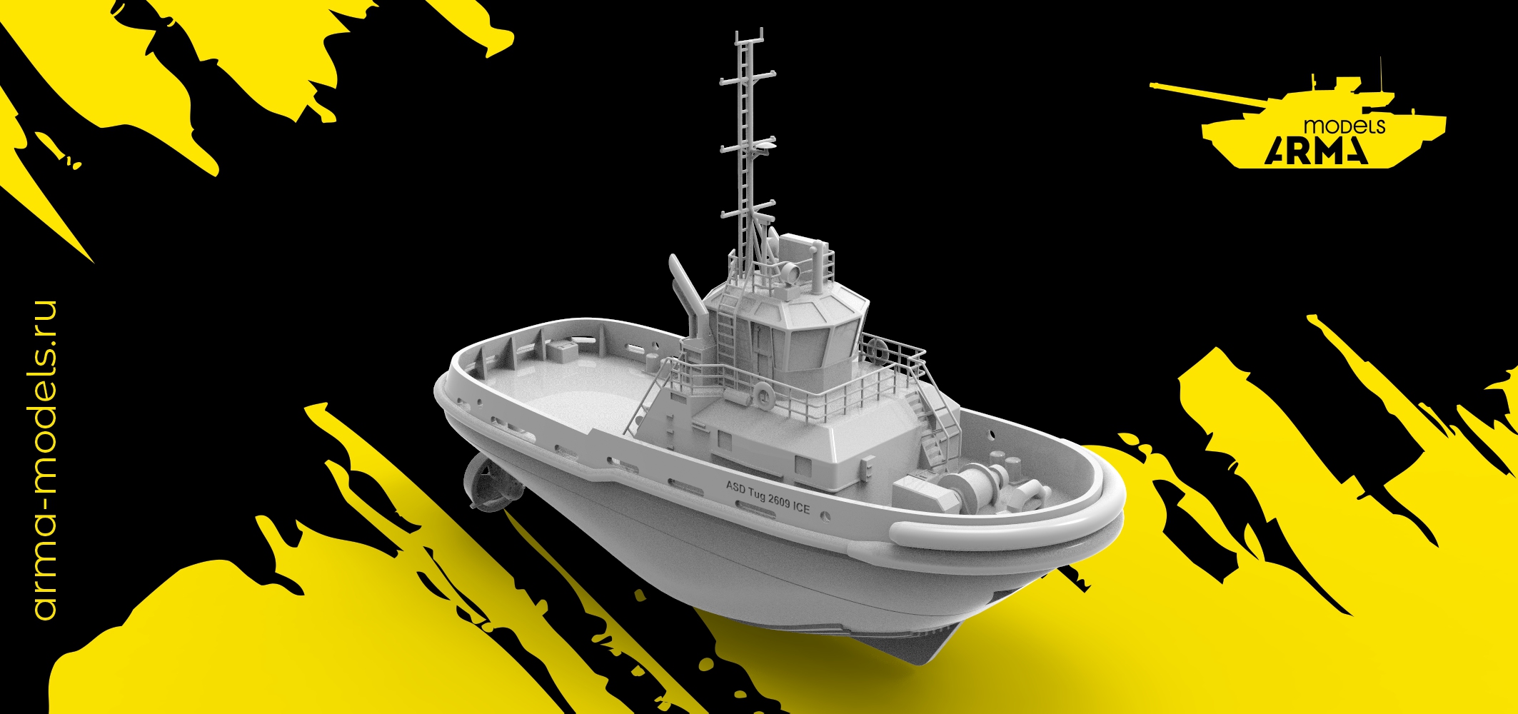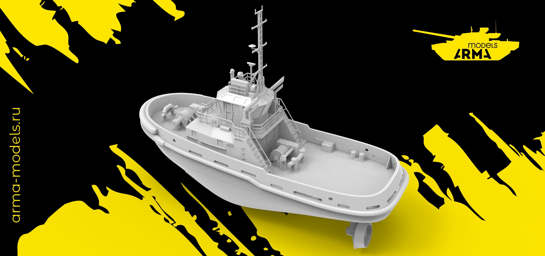 Подробно детализированная модель морского буксира, выполненная в том же масштабе, что и Арктика.