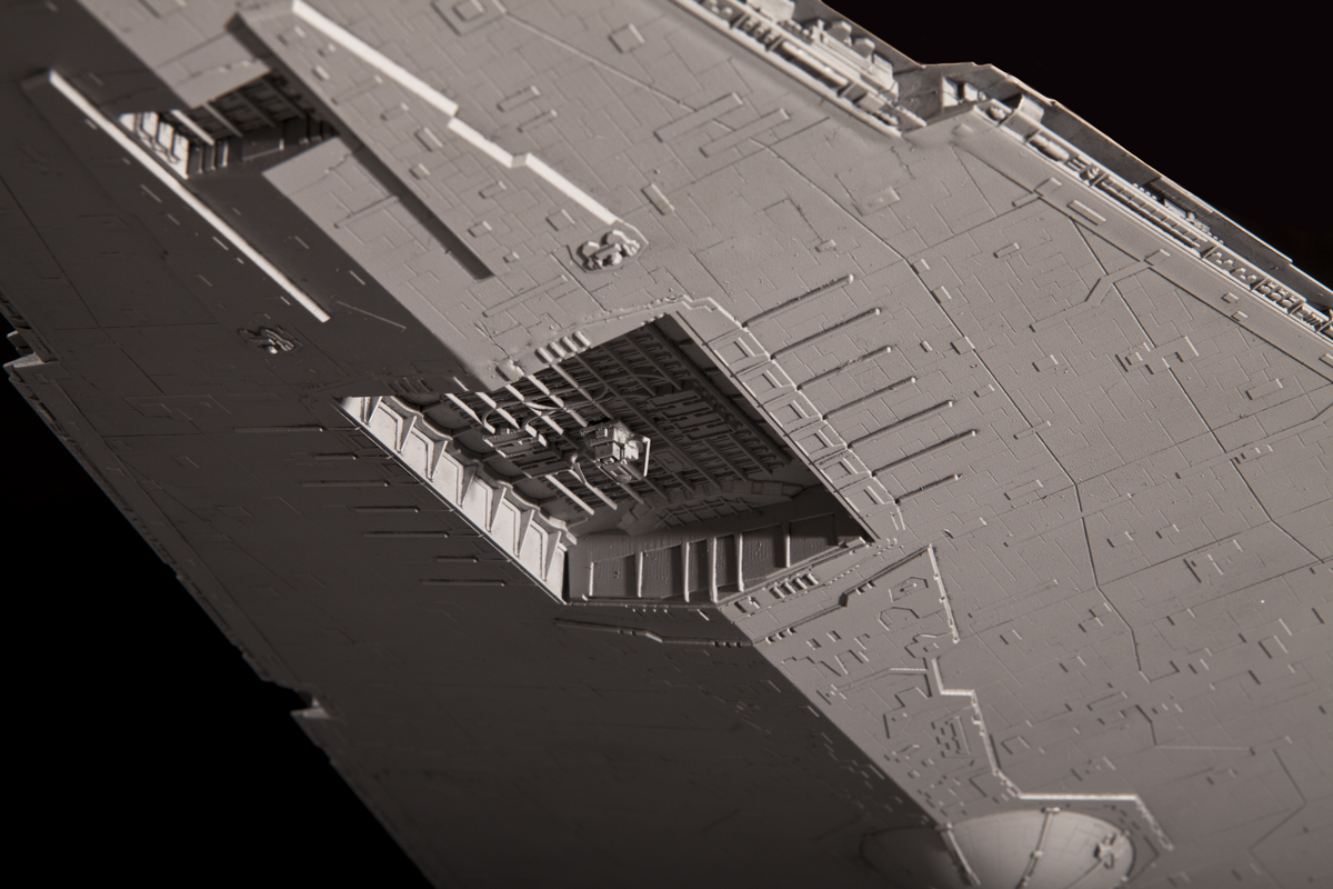 В ангаре Звёздного Разрушителя находятся эскадрильи имперских истребителей, перехватчиков и бомбардировщиков, а также крупные десантные силы, включающие в себя: наземные шагоходы, пехоту и вспомогательные десантные корабли. Масштаб 1/2700