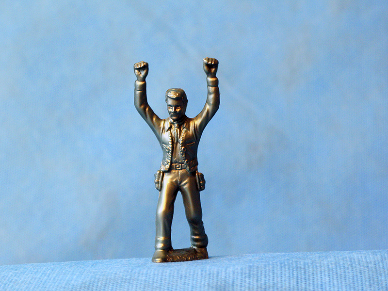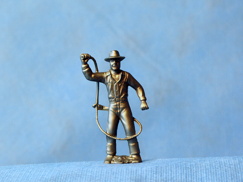 Первый набор «Ковбои» в серии «Ковбои из города Роя Роджерса» американская «Луи Маркс и Компания» выпустила в 1953 году. В 1962 году ковбои вошли в знаменитую серию «Воины Мира». Эти фигуры получили собственные имена и краткие биографии. Они делались в Гонконге из жёсткого пластика, окрашивались на фабрике и продавались поштучно в коробках с вкладышами. А в 1977 году набор из 8 фигур ковбоев производства Донецкой фабрики игрушек появился в продаже в СССР.