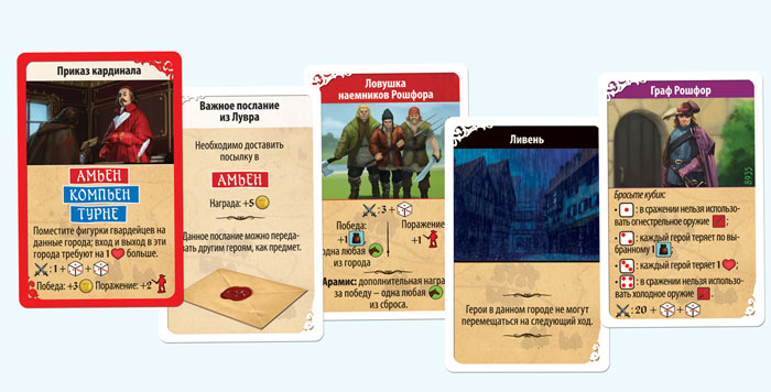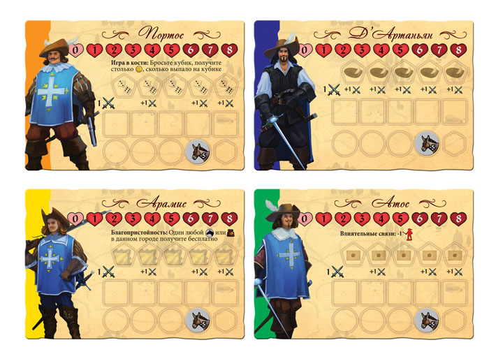 Настольная игра «д’Артаньян и три мушкетера» вышла в свет. Это командная игра для всей семьи расскажет о захватывающих приключениях четырех друзей, которые отправились из Парижа в Лондон за подвесками королевы. История знакомая многим с детства, не правда ли? Яркое оформление, большое количество игровых компонентов, известная тема и приемлемая цена делают данную игру интересной для всех. Не забыли мы и о игровой механике, поставив во главу угла командные действия, менеджмент ресурсов и неожиданные события, которыми наполнен путь героев.