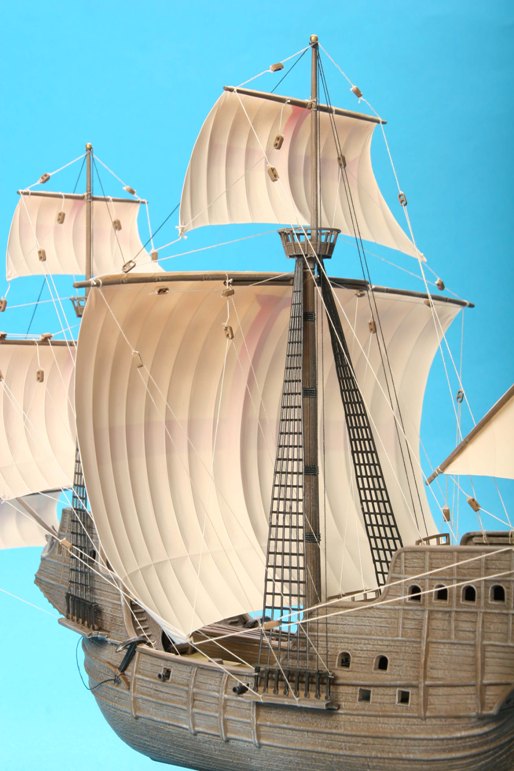 Модель корабля XVI века, на кораблях такого класса конкистадоры отправлялись покорять земли Нового Света. Корабль мог принять на борт до 900 тонн груза при водоизмещении 1600 тонн и мог перевозить 600-700 вооруженных человек.