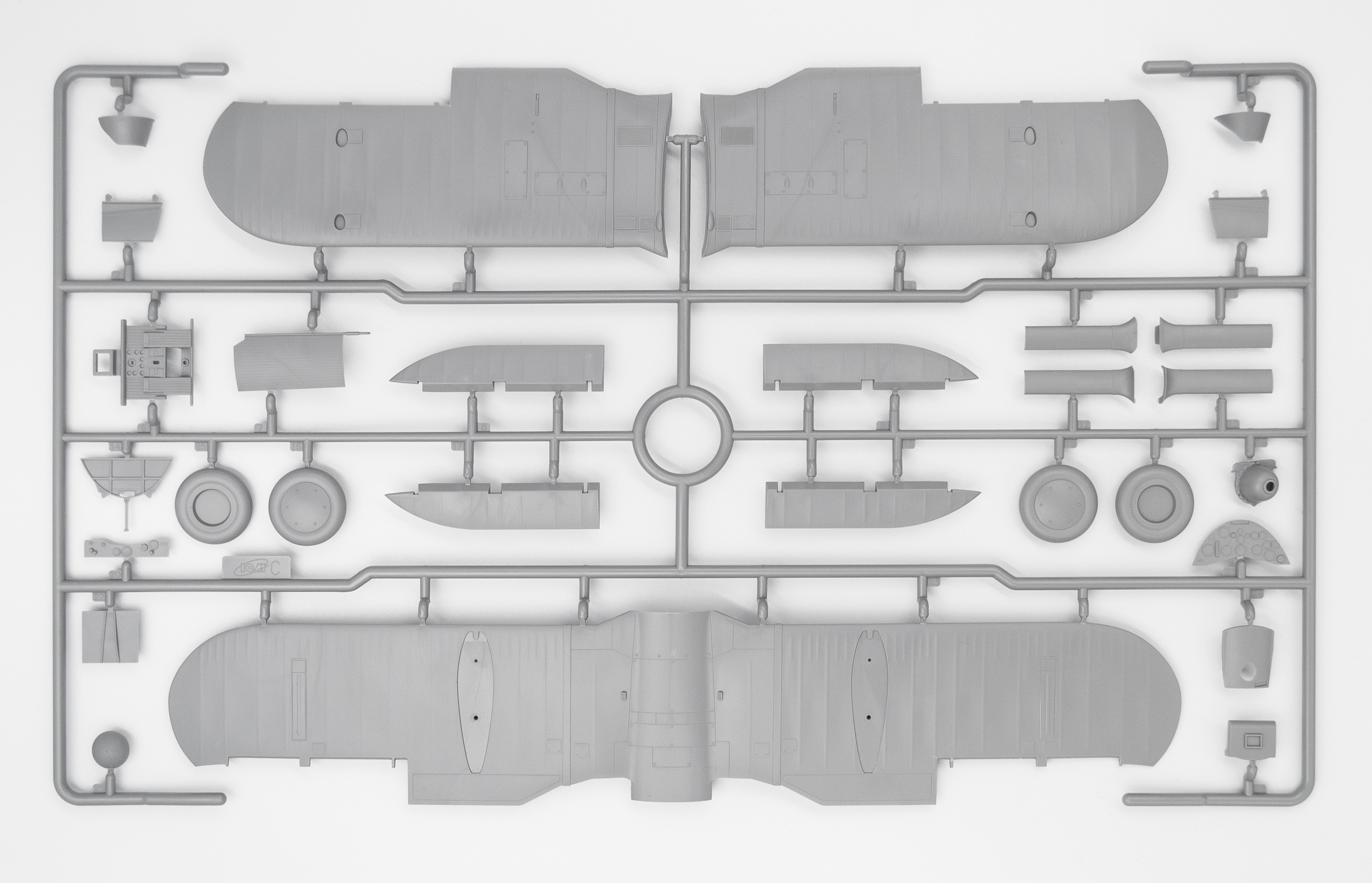 Длина модели 262 мм, размах крыльев 307 мм, 140 деталей, 4 варианта декалей. Подставка в комплект не входит.